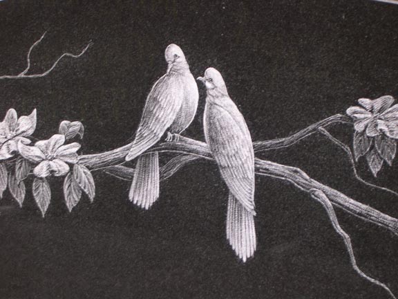 We have artists available for custom drawing of scenes or portraits to be permanently etched onto a granite memorial. Diamond etching is an excellent way to customize and personalize a memorial, with high definition images. Shown below are some examples of actual etchings